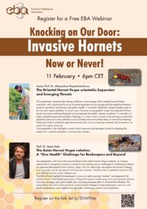 The European Beekeeping Association (EBA) continues its commitment to education and knowledge-sharing with a series of free webinars for beekeepers and stakeholders. The next session, titled “Knocking on Our Door: Invasive Hornets – Now or Never!”, is scheduled for February 11.2026 at 6:00pm (CET). The webinar will feature two expert speakers: Assist. Prof. Dr. Alexandros […]