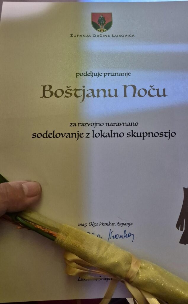 EBA President Boštjan Noč received the Medal of Trust of the Municipality of Lukovica, an award from Mayor Olga Vrankar.