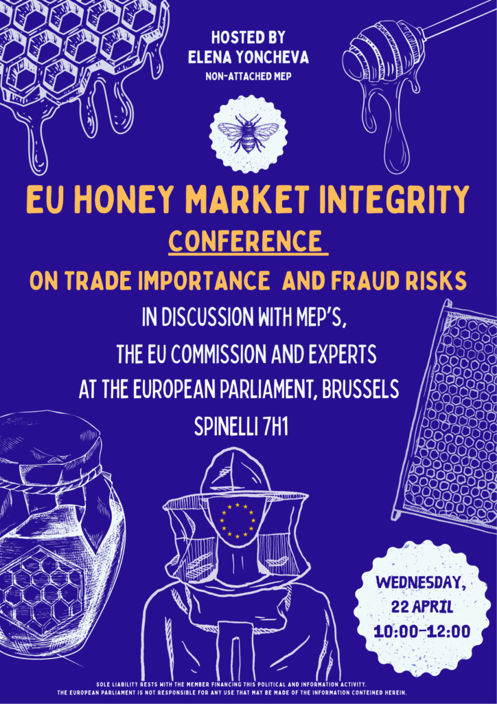 The conference is organised by Elena Yoncheva, Member of the European Parliament, and will focus on safeguarding the integrity of the EU honey market and addressing the growing risks of fraudulent and adulterated honey entering the EU supply chain.