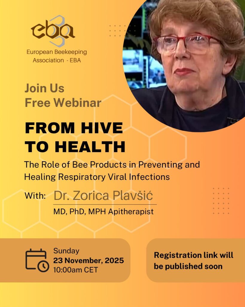 The European Beekeeping Association (EBA) is pleased to announce an upcoming webinar focused on the vital link between bee products and respiratory health. The event will highlight scientific evidence and natural approaches that support the immune system and promote recovery from respiratory viral infections.