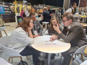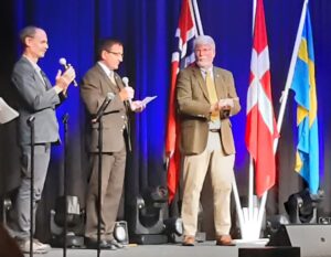 The President of the EBA is at the World Congress in Denmark met with Noa Simon from Bee life and Ellmann Torsten president of Deutscher Imkerbund e.V. and vice president of Copa Cogeca.